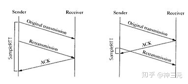 在没有时间戳的时候,计算 RTT 会遇到的问题如下图所示: