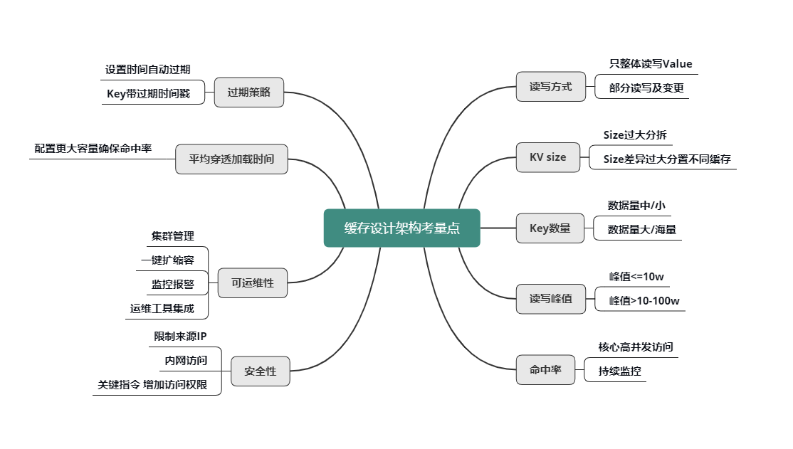 - 如何更好地引入和使用缓存,自系统设计之初,就把缓存设计的关键点对号入座。