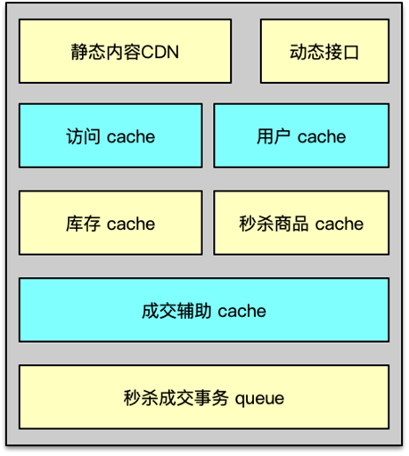 为秒杀商品构建商品信息缓存,并对全部目标商品进行预热加载。同时对秒杀商品构建独立的库存缓存,加速库存检测。这样通过秒杀商品列表缓存,进行快速商品信息查询,通过库存缓存,可以快速确定秒杀活动进程,方便高效成交或无可售商品后的快速检测及返回。在用户抢购到商品后,要进行库存事务变更,进行库存、订单、支付等相关的构建和修改,这些操作可以尽量由系统只与缓存组件交互完成初步处理。后续落地等操作,必须要入DB库的操作,可以先利用消息队列机,记录成交事件信息,然后再逐步分批执行,避免对 DB 造成过大压力。